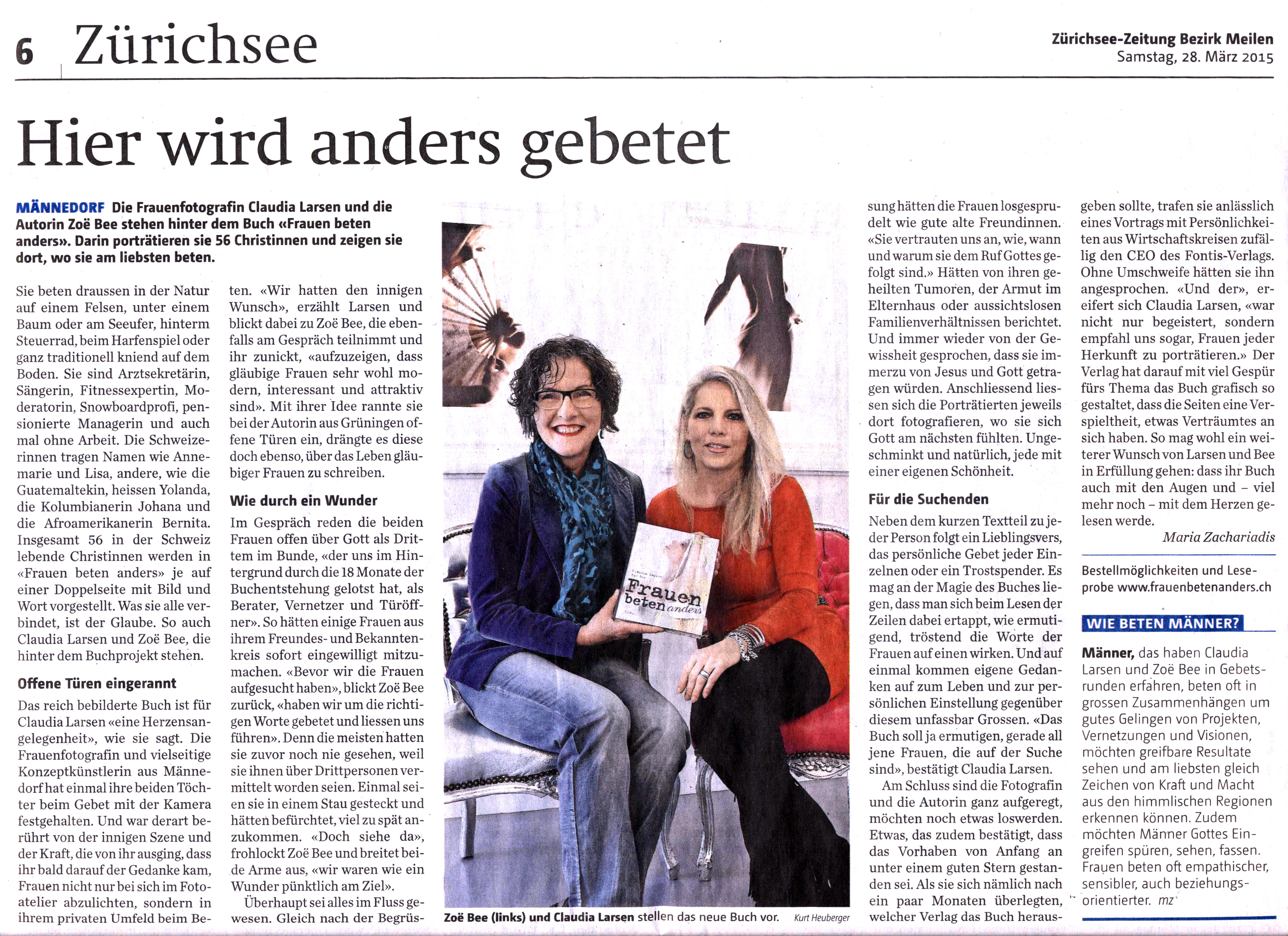 » 2015 Interview mit Zoë Bee und Claudia Larsen in der Zürichseezeitung